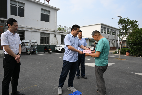 在棗林社區(qū),褚有春首先與社區(qū)工作人員進(jìn)行了親切交流,了解了社區(qū)的基本情況。隨后,在莊墓鎮(zhèn)組織委員吳瑾陪同下先后走訪了三位困難老黨員的家庭。在走訪過程中,褚有春詳細(xì)詢問了老黨員們的身體狀況、生活情況以及存在的困難并為他們送上了慰問品和慰問金,也鼓勵他們繼續(xù)發(fā)揮余熱,為社區(qū)的發(fā)展和穩(wěn)定貢獻(xiàn)自己的力量。