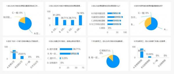 公司始終將培訓評估視為檢驗培訓成果、優(yōu)化培訓體系的重要抓手。在7月開展的員工業(yè)務能力提升專項培訓結(jié)束后,相關部門精心設計了涵蓋課程內(nèi)容實用性、與工作的貼合度、講師授課水平、培訓組織安排等多個方面的調(diào)查問卷,通過線上方式發(fā)放給參訓員工,確保全面收集大家對培訓各環(huán)節(jié)的真實評價。在收到的31份調(diào)查問卷中,80%的參訓人員認為課程設置“非常貼合”工作實際,97%的參訓人員認為通過培訓,自身業(yè)務水平“有所提升”。培訓管理部門通過對培訓工作中的經(jīng)驗與不足進行深度總結(jié),形成閉環(huán)管理模式,持續(xù)推動后續(xù)培訓方案不斷優(yōu)化,推動培訓質(zhì)量有效提升,助力員工實現(xiàn)全面進階,為公司高質(zhì)量發(fā)展凝聚人才合力。
